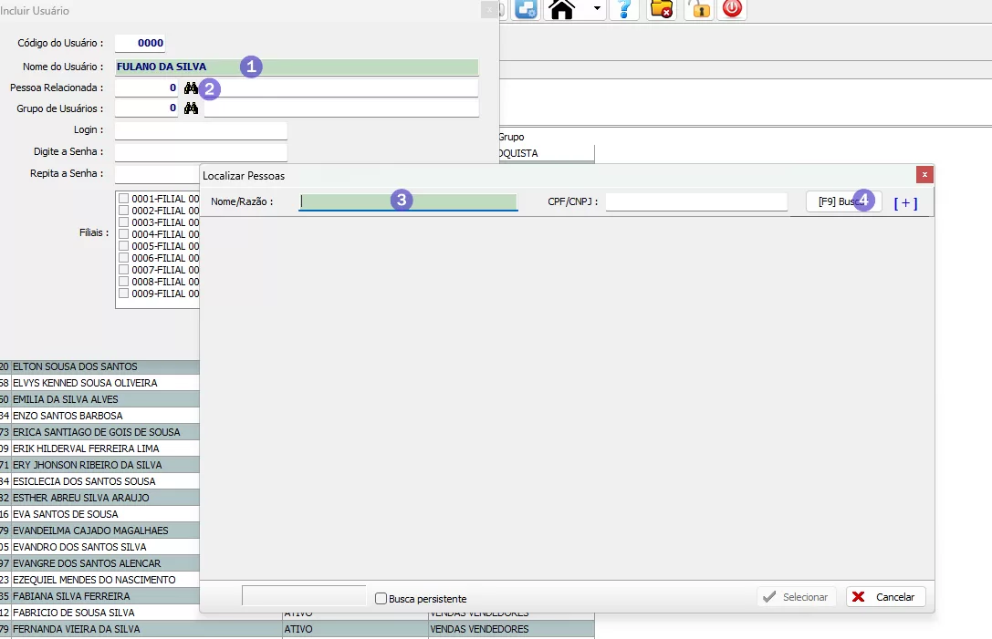 Selecione o Usuário na lista > Clique em Selecionar