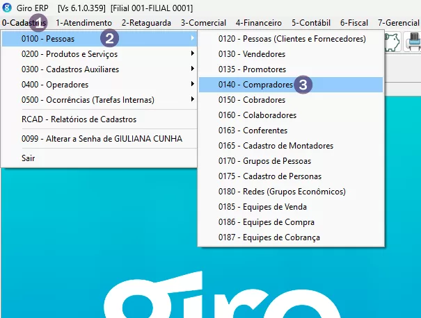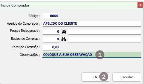 1. Coloque o nome do Comprador que foi cadastrado em Cadastro de Pessoas.