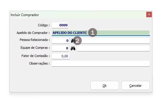Na aba de Incluir Comprador: