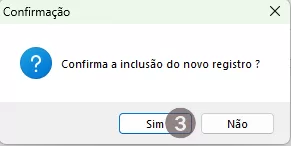 2.  Selecione a opção 1 – Incluir novo registro.