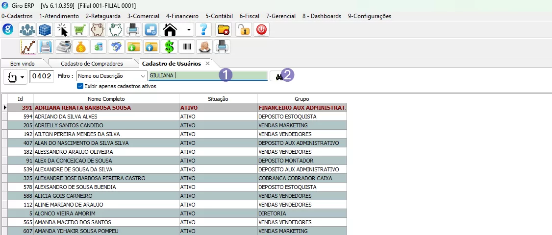 Descubra o Grupo do Operador: Antes de alterar o privilégio, você precisa saber em qual grupo o usuário está cadastrado: