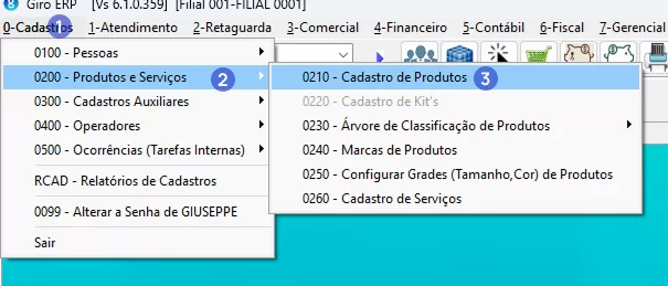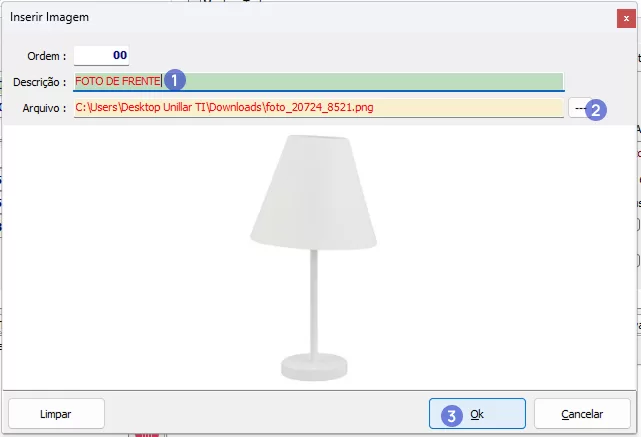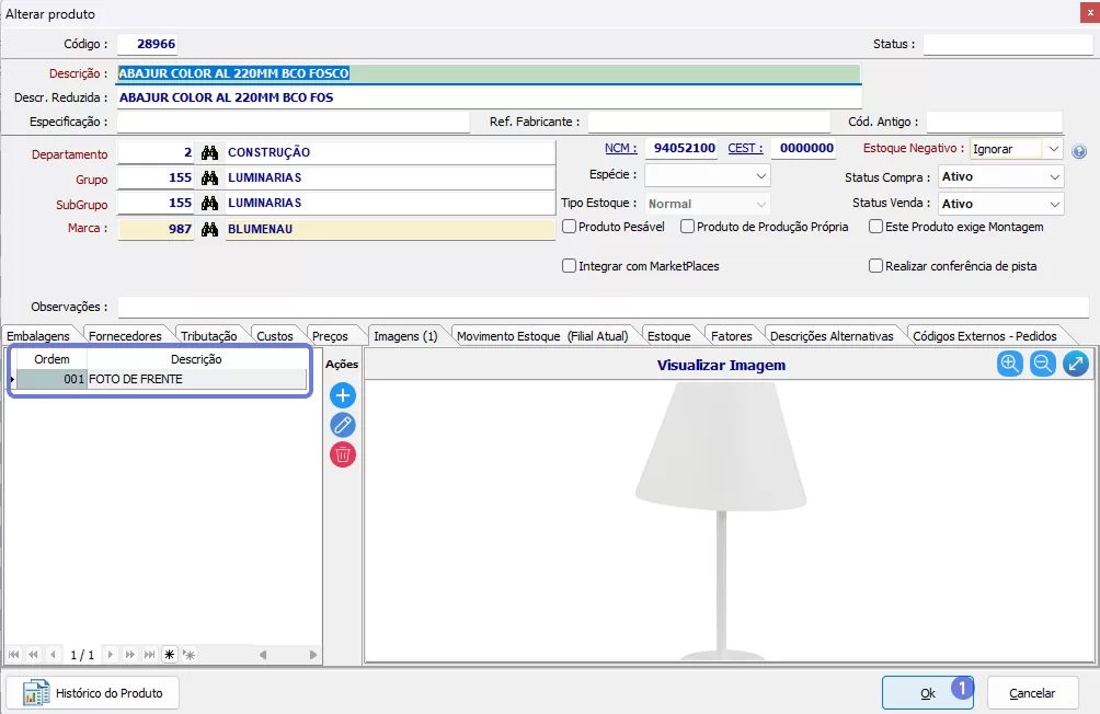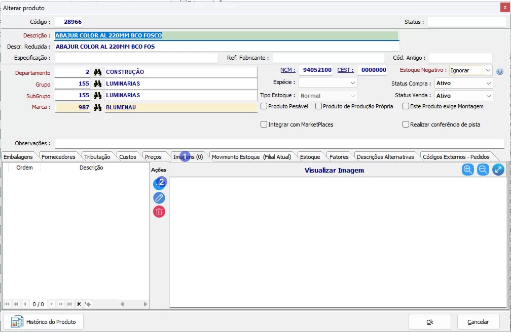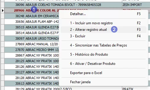 Na tela de cadastro de produtos, clique com o botão direito sobre o produto que deseja adicionar a imagem.