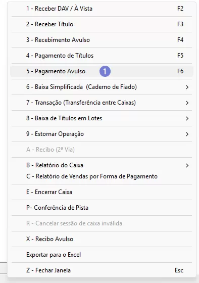 1. Com o caixa aberto, vá para: 1- Atendimento