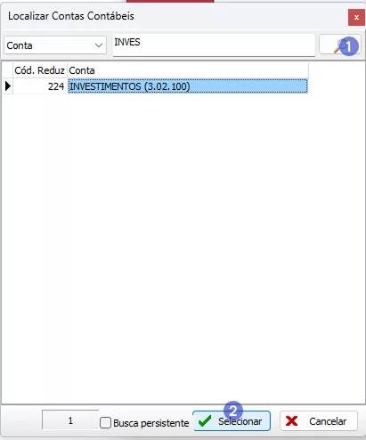 • No menu de Contrapartida, escolha a conta apropriada (exemplo: “Investimento”).