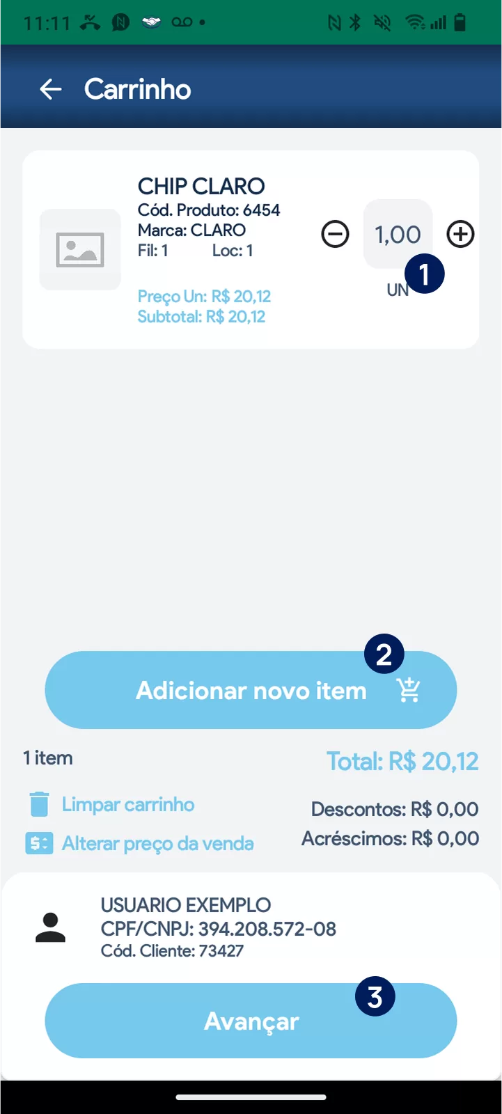 Se o cliente desejar mais produtos, repita os Passos 1 a 3.