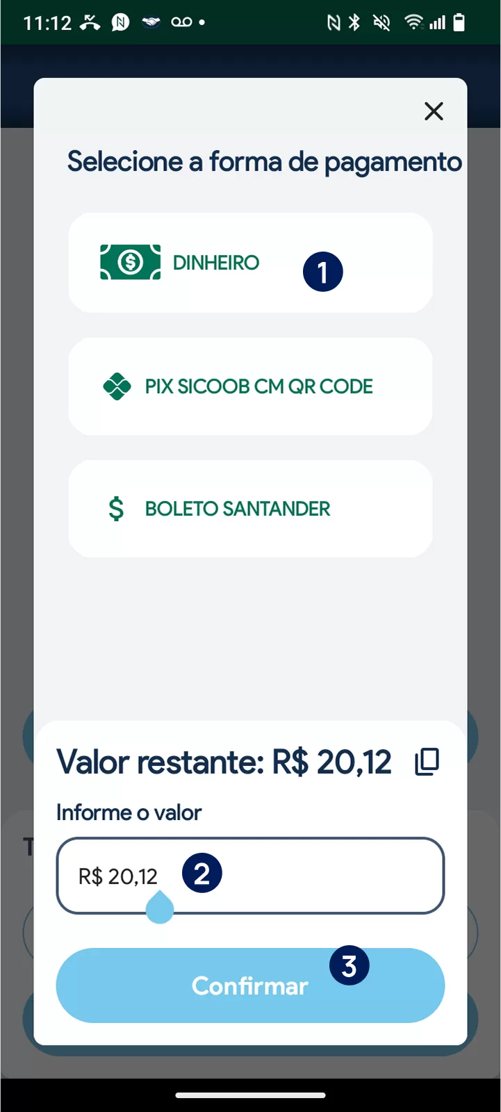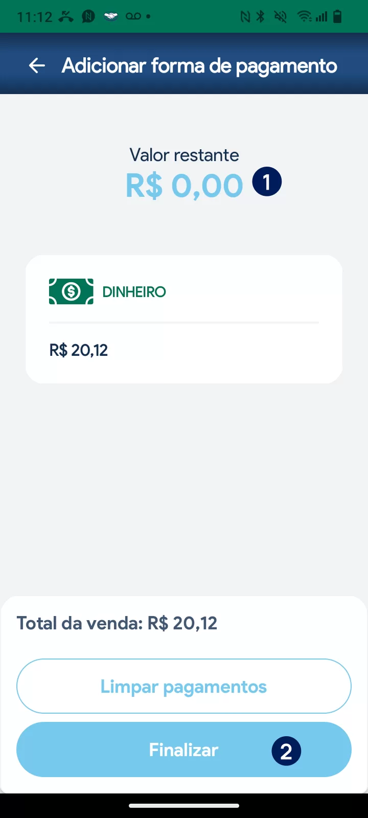 Selecione a forma de pagamento (ex: Cartão, Dinheiro, PIX).